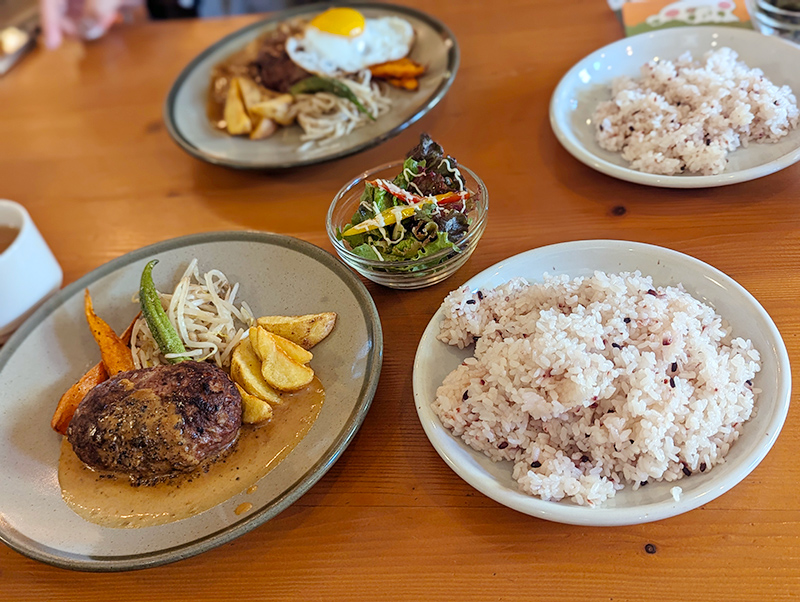そしてこちらの定番メニューは小江戸黒豚と北海道エゾ鹿肉のハンバーグ。店主さんに少しお話をお伺いすると、この鹿肉ハンバーグは元々店主さんのお子さんがアトピー性皮膚炎を患っていた時期に、試行錯誤をして生まれたものだそうです。